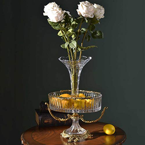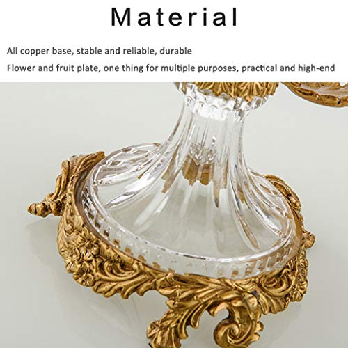 【Glazen fruitschaal + kristallen vaas】: Kristallen worden gebruikt om een unieke bloemvorm te ontwerpen, en hoogwaardig koper wordt gebruikt om een stabiele steelbasis te creëren; De glazen fruitschaal + kristallen vaas is slim met elkaar verbonden, waar je favoriete bloemen in passen en fruit tegelijkertijd; het is ook een goede keuze om andere kleine voorwerpen op te bergen